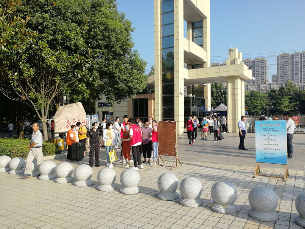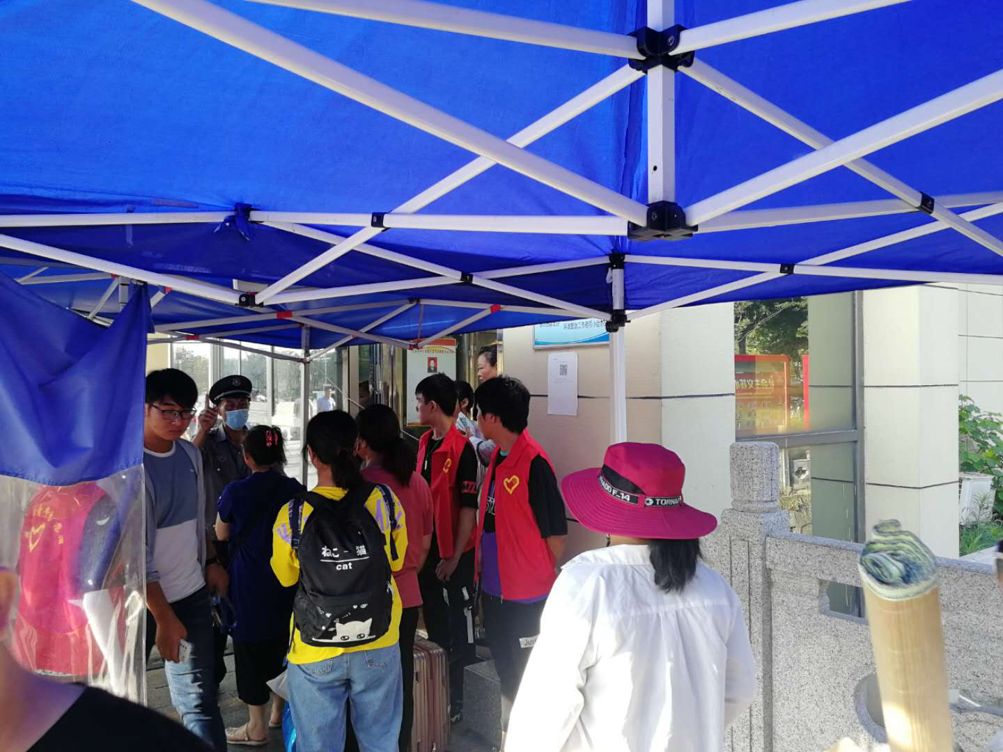 为确保我校迎新工作高效有序进行,更好地配合防疫工作,校学生会做了充分的准备,并发动校志愿者们参加迎新工作,此前,他们特地进行了岗前培训,以确保现场工作有条不紊。 8月24日早晨,志愿者们早早来到各自岗位等候新生和家长的到来。在学校各门口、咨询服务点、各学院报到处、新生宿舍,随处可以看到“红马甲们”忙碌的身影,为新生及家长提供校园引导、报到咨询、行李运送、临时休息等服务。他们身着统一的服装穿梭在校园里,像一面面旗帜,飘扬着,指引着方向。