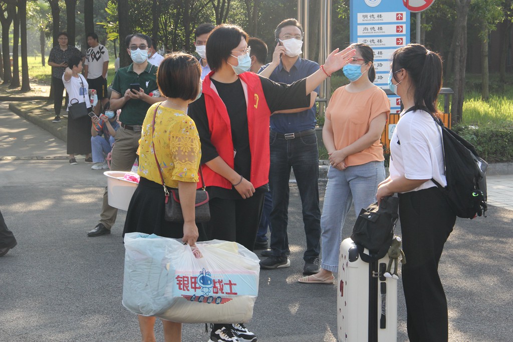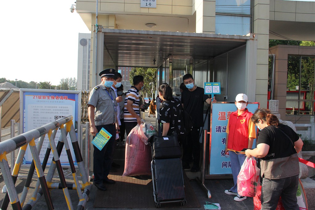 校领导班子成员在校门口靠前指挥,老师和志愿者们负责提醒同学们戴好口罩,为入校家长和学生统一消杀,现场查验行程码、健康码。校内,学生志愿者帮助进校学生提拉行李,引导新生到学校专门安排的公交车点上车,方便住宿生转运行李。志愿者们活跃在学校各处,协助学校各部门各司其职,整个过程安全高效、秩序井然。