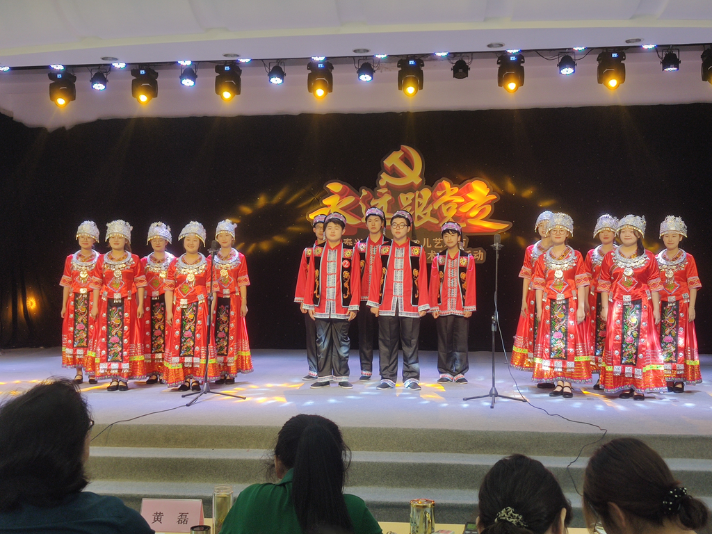 25日下午,由许樱老师指导的校合唱社团作为第三个节目上场,该社团自接到通知后才组建完成,虽时间很短,但许老师鼓励社员们只要敢拼,要相信没有完成不了的任务。她利用一切时间排练,甚至周末时间也来排练。学生演唱流畅,三个声部相互配合,一首旋律优美的《大地飞歌》自艺术中心飘出,余韵绕梁,让人久久沉醉,同时征服了在场的评委,获得高中组第一名。