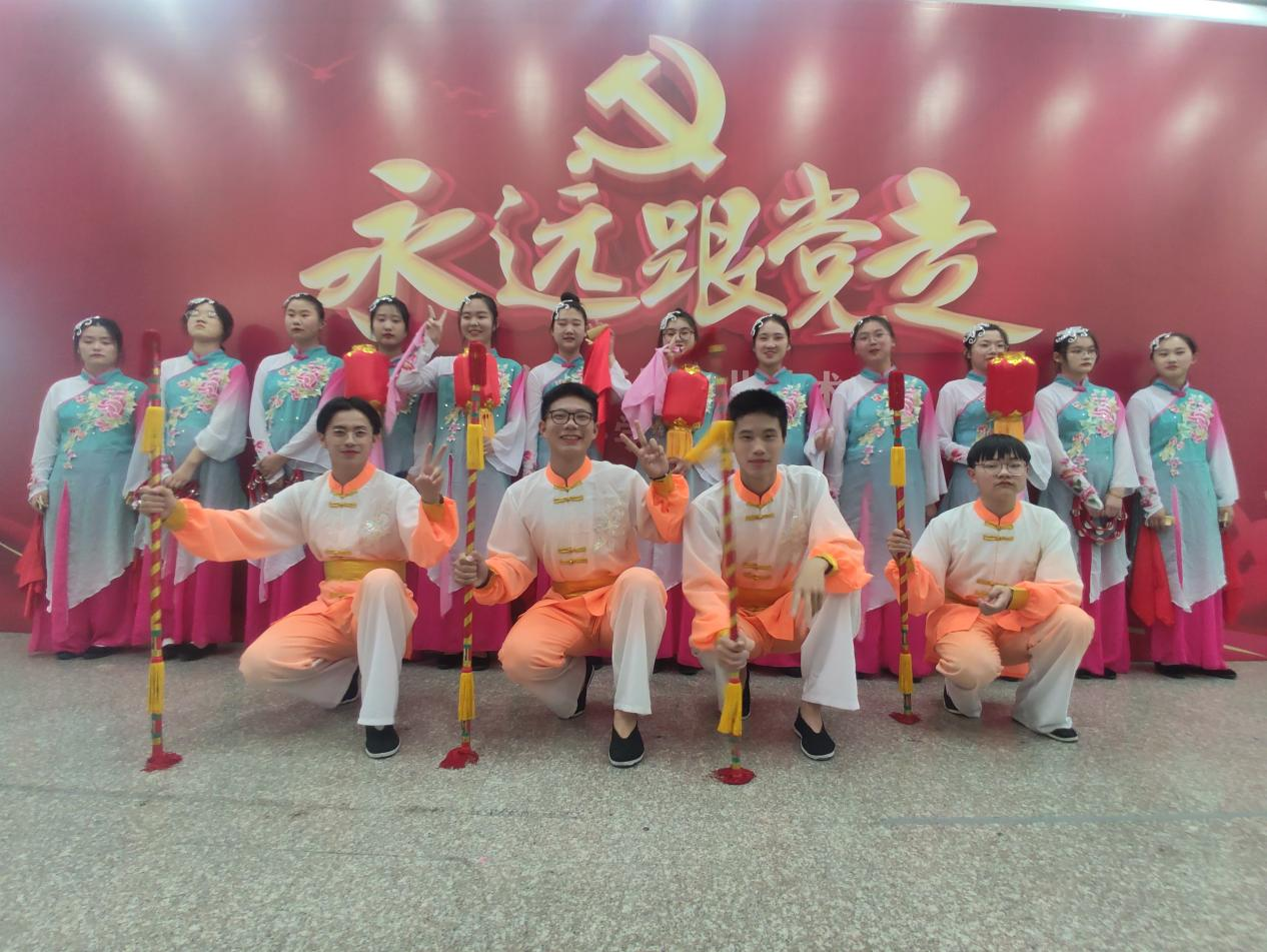 花鼓戏由于成立不久,社团经验和排练经验有限,但也获得了第四名的成绩。花鼓戏作为我们泰兴的非遗文化,社团自2020年创建,聘请校外民间艺人为老师,加入社团的多为机电工程系学生,他们基本上没有学过舞蹈,零基础,老师一个动作一个动作的教,给他们扣细节,扣动作,虽未学过舞蹈,但是学生们不放弃,利用晚自习的时间自发主动学习,从一开始的紧张羞涩舒展不到位,到最后能够自信地舞台上展示自我,有了质的飞跃。虽然他们的动作不能跟舞蹈社团的学生媲美,但是他们尽心尽力地传承泰兴花鼓的美,并愿意继续坚持下去发扬光大的精神值得我们学习。