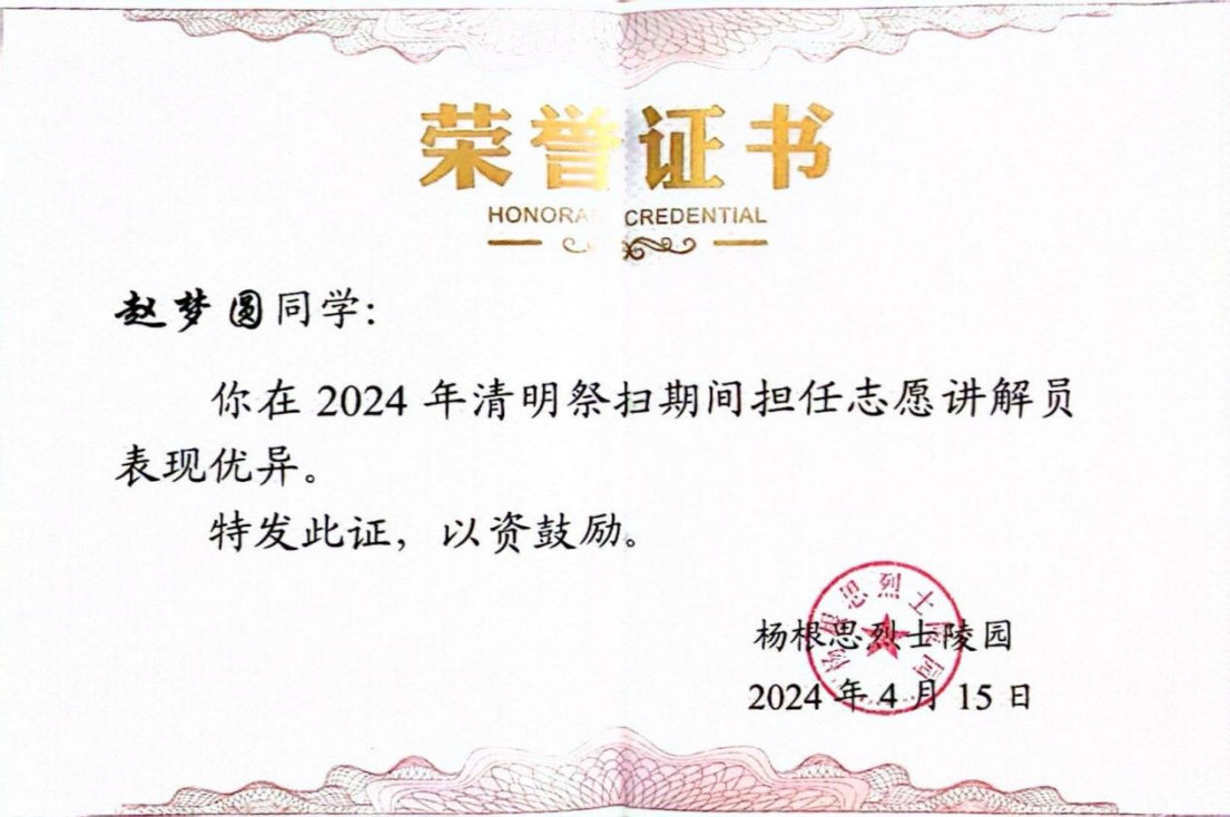 随着春风的轻轻吹拂,我校六名学生踏上了一段意义非凡的旅程。他们前往杨根思烈士陵园,参与了为期十天的志愿讲解活动,旨在协助陵园做好清明祭扫服务,以青春的力量弘扬红色基因,传承革命精神。
