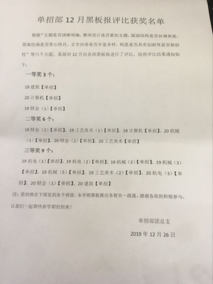 江苏省泰兴中专校单招部 2020学年第二学期十二月黑板报计划