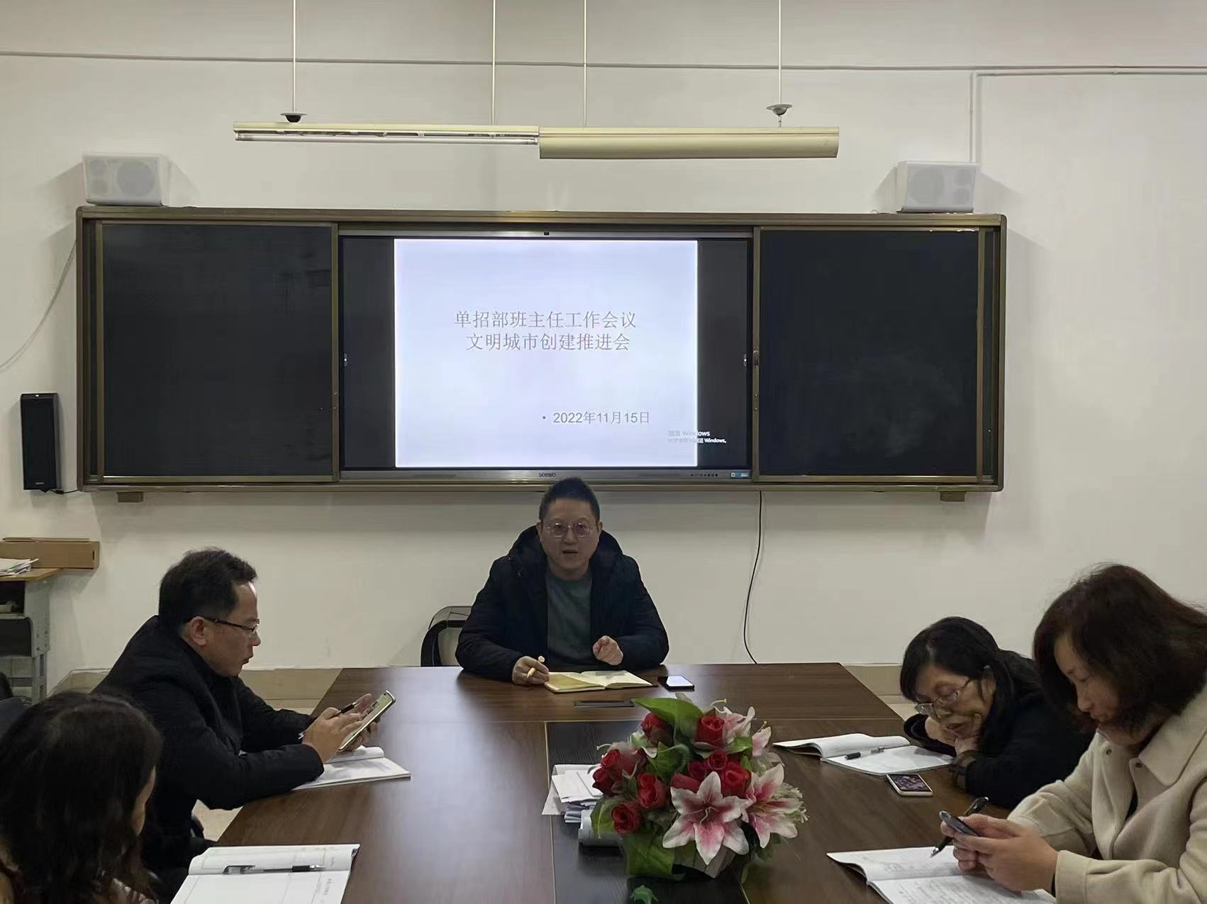 11月15日单招部在301会议室召开文明城市创建推进会。