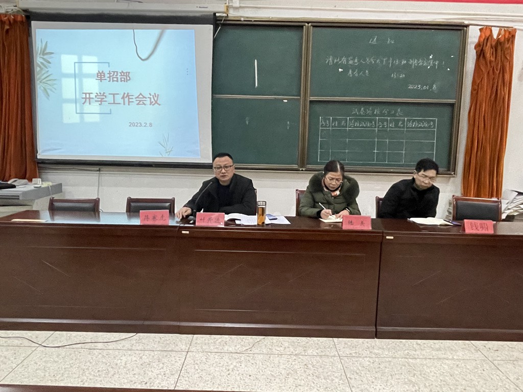2月8日下午两节课后在6号楼阶梯教室单招部召开新学期全体教职工大会,会议由单招部叶开进主任主持召开。会议内容部署新学期开学各项工作安排,尽快的让学生从寒假生活回到学习生活。会议中叶开进主任带大家重温《泰兴市师德师风建设“十条禁令”》。
