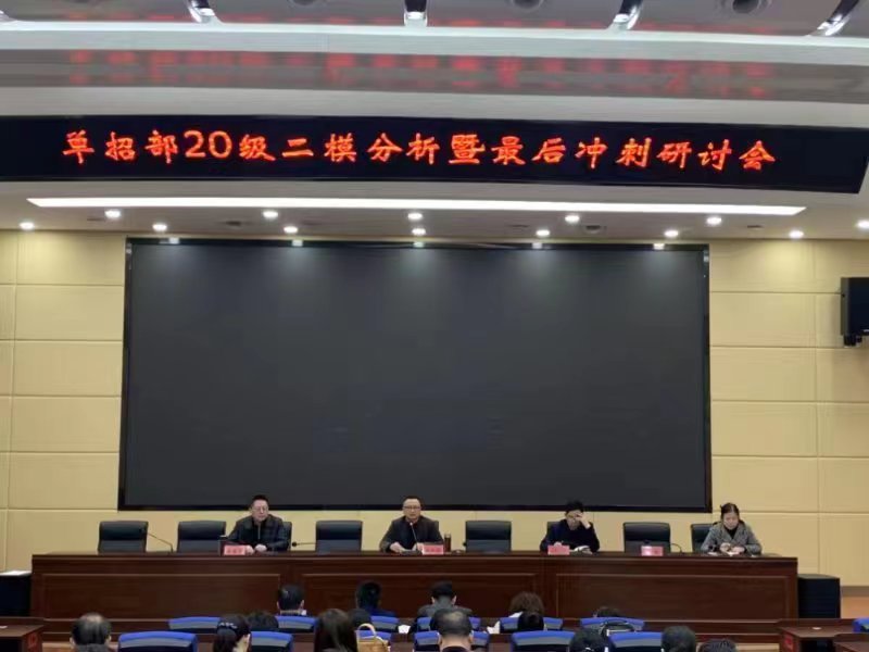 2023年4月4日下午四点,单招部在学校知行厅召开了高三二模分析暨最后冲刺研讨会,20级各班的文化课、专业理论课全体教师齐聚一堂,共商高三最后冲刺复习具体计划。