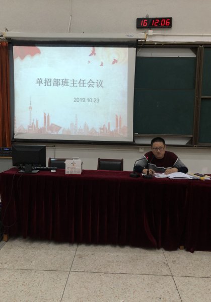 10月23日单招部在六号楼阶梯教室开班主任工作会议,会议由蒋赛虎主任主持召开