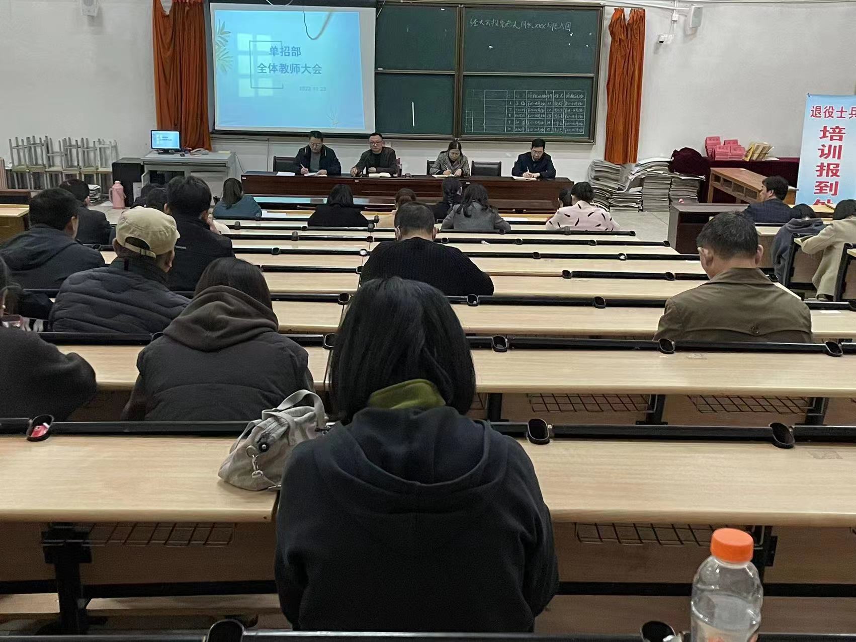 11月23日单招部在6号楼阶梯教室召开单招部全体教师大会。