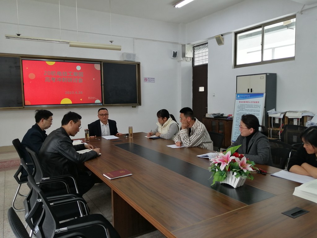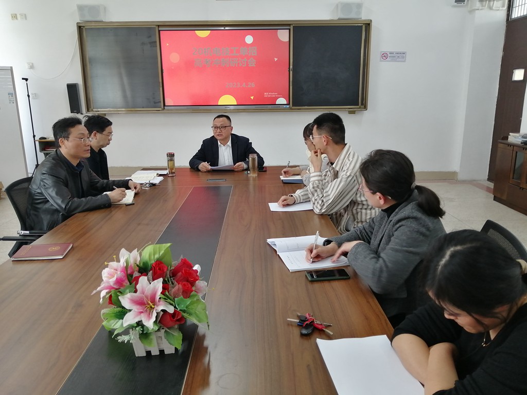 4月26日下午第二节课,单招部在5-301会议室召开20机电技工班高考最后冲刺复习研讨会。会议首先由叶开进主任分析了最近五次的模拟考试成绩,对班级总体成绩情况做了充分的肯定,然后针对每个学生的实际情况,提出了查漏补缺的方案措施,最后强调复习一定要抓细抓实抓基础,并且要求做好每个学生的后勤保障,抓住每一个学生,决不放弃任何一个学生。会上,班主任和任课老师积极发言,对特殊学生存在的问题提出自己的想法和措施。