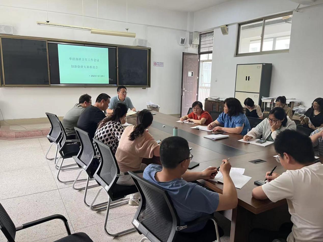 5月29日下午,单招部召开班主任会议和创新创业大赛推进会,蒋赛虎主任强调各班务必保证所有学生参加“每日一答”,要求各班学生全部参加,认真答题,注意答题的注意事项。为6月1日的总决赛做好准备。通知各班下周末前进行月考,各班做好备考工作。