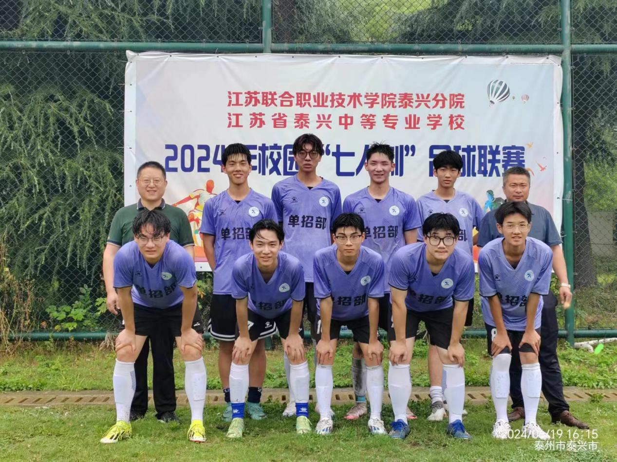 2024年6月19日江苏省泰兴中等专业学校足球赛决赛正式开始,经过为期两个星期的足球赛落下帷幕。 在最精彩的争冠赛中,单招部与建筑工程系的球员意气风发,斗志昂扬。 随着哨声的响起,他们迅速进入了状态。 单招部的球员先发制人,凭借凶猛的攻势迅速压制全场。 球员们高超的过人技巧和巧妙的盘带看得观众眼花缭乱、热血沸腾,看台上随着比赛节奏爆发出阵阵掌声与喝彩。 最终凭借“点球大战”以3∶2战胜对手获得冠军。