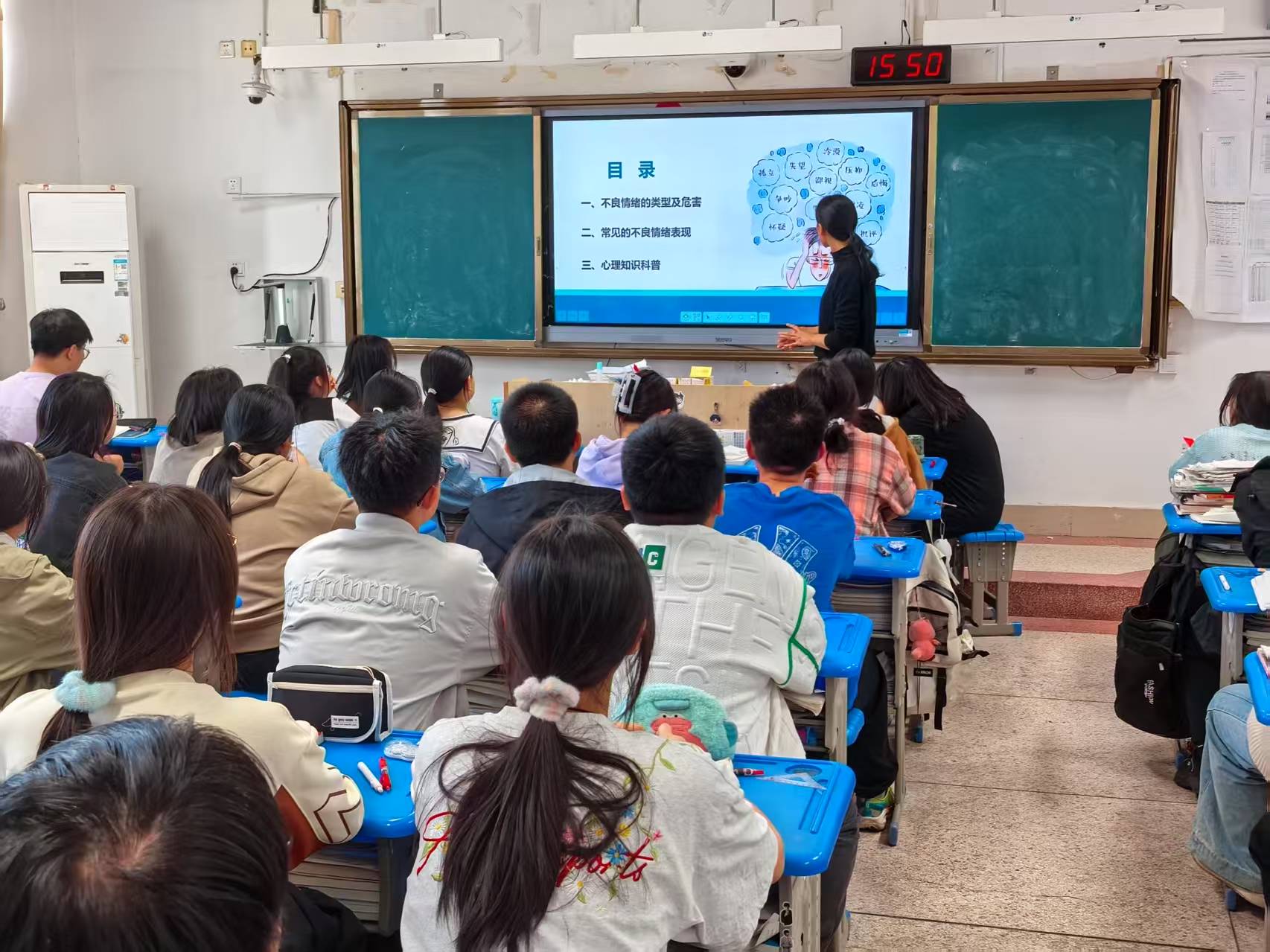 4月15日,单招部各班开展心理健康课,课上以“做情绪的主人”为主题,让学生了解生活中易出现的不良情绪的类型及危害,常见不良情绪表现等内容,课上还向学生进行了心理知识的科普。