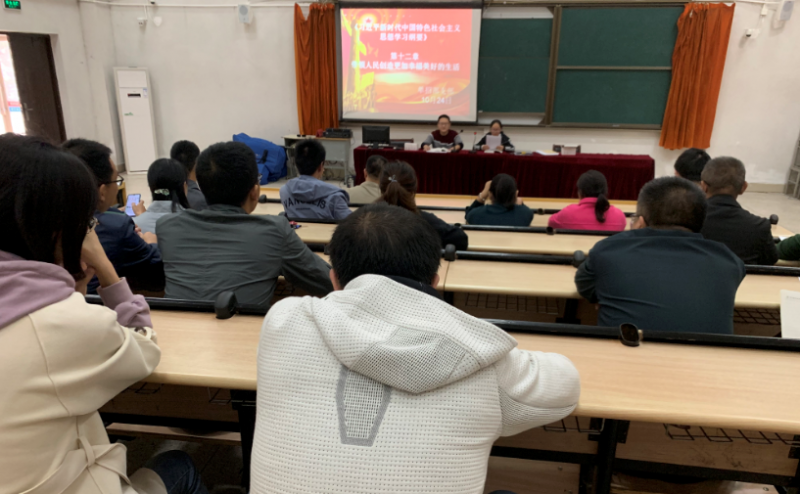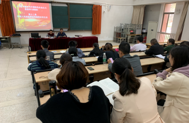 10月24日下午,江苏省泰兴中等专业学校单招党支部组织全体在职党员在蒋赛虎书记的带领下学习《习近平新时代中国特色社会主义思想学习纲要》第十二章带领人民创造更加幸福美好的生活,各党员同志就此进行了心得体会交流。