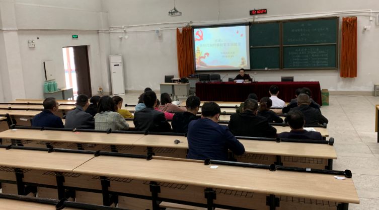 11月1日下午,江苏省泰兴中等专业学校单招党支部组织全体在职党员在蒋赛虎书记的带领下学习《习近平总书记在主持中央政治局第十五次集体学习时的讲话》,并热烈讨论新时代如何搞好党支部建设。