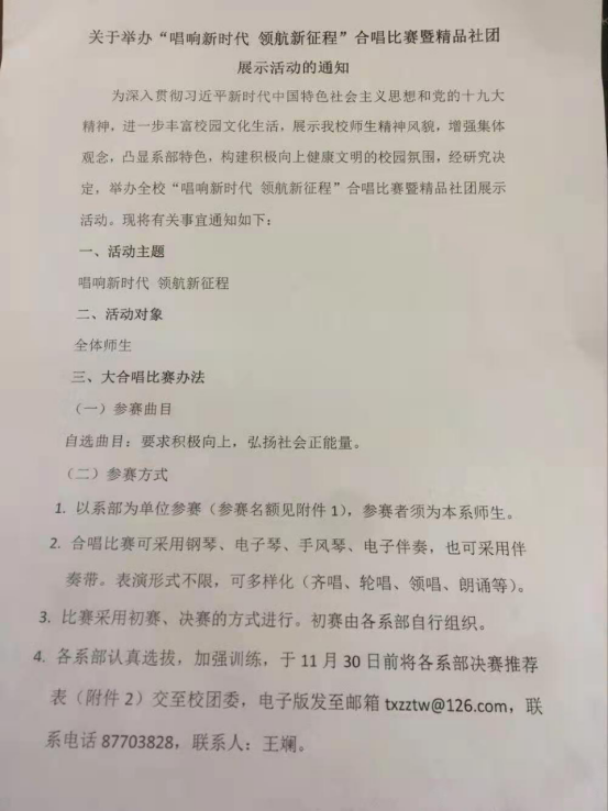 日,为响应学校本次合唱比赛的号召,全系积极动员各班学生积极报名参与,各班准备工作正紧锣密鼓地筹备当中。