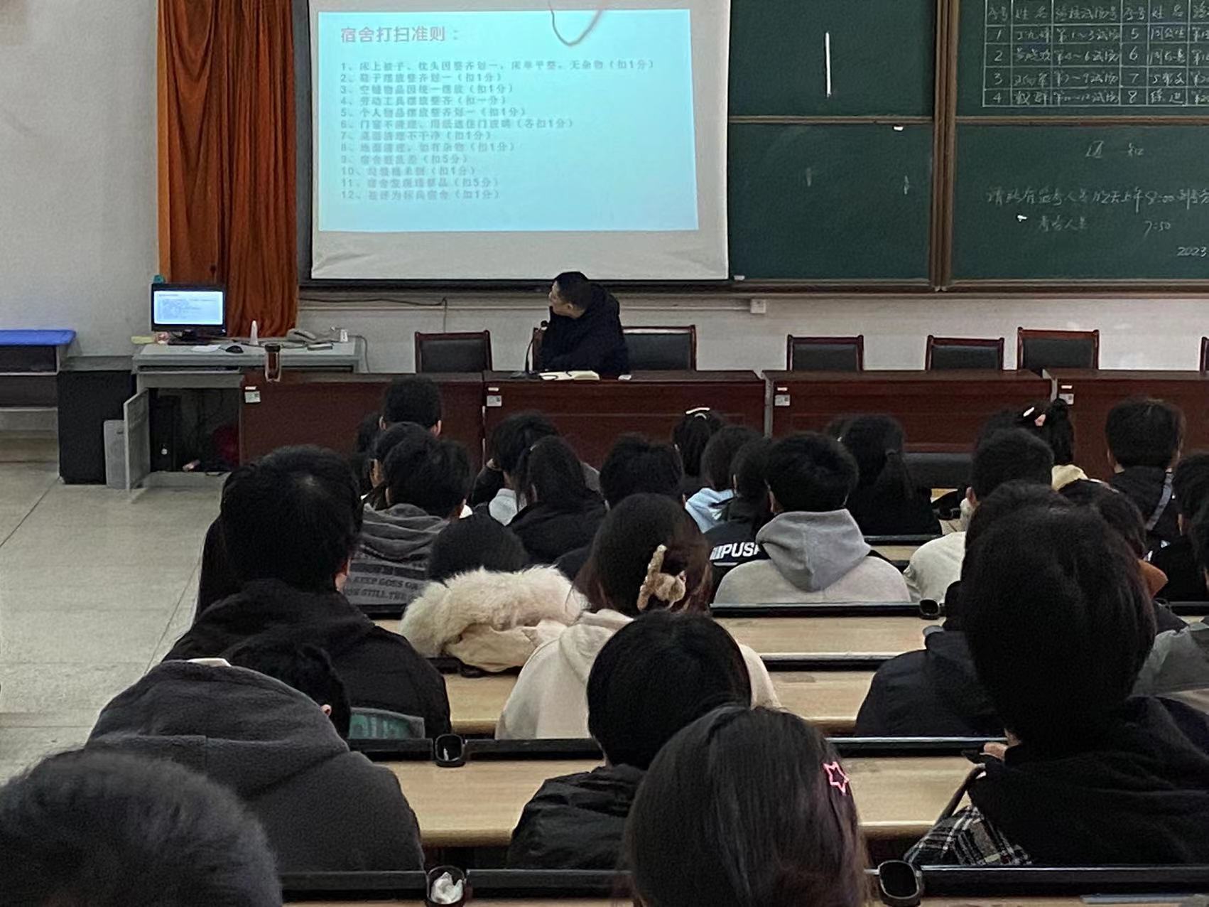 3月28日单招部召开了宿舍舍长会议,蒋赛虎主任强调了宿舍的就寝纪律、宿舍卫生以及宿舍要注意的安全。会后观看了宿舍条例、标准宿舍要求以及被通报的宿舍!