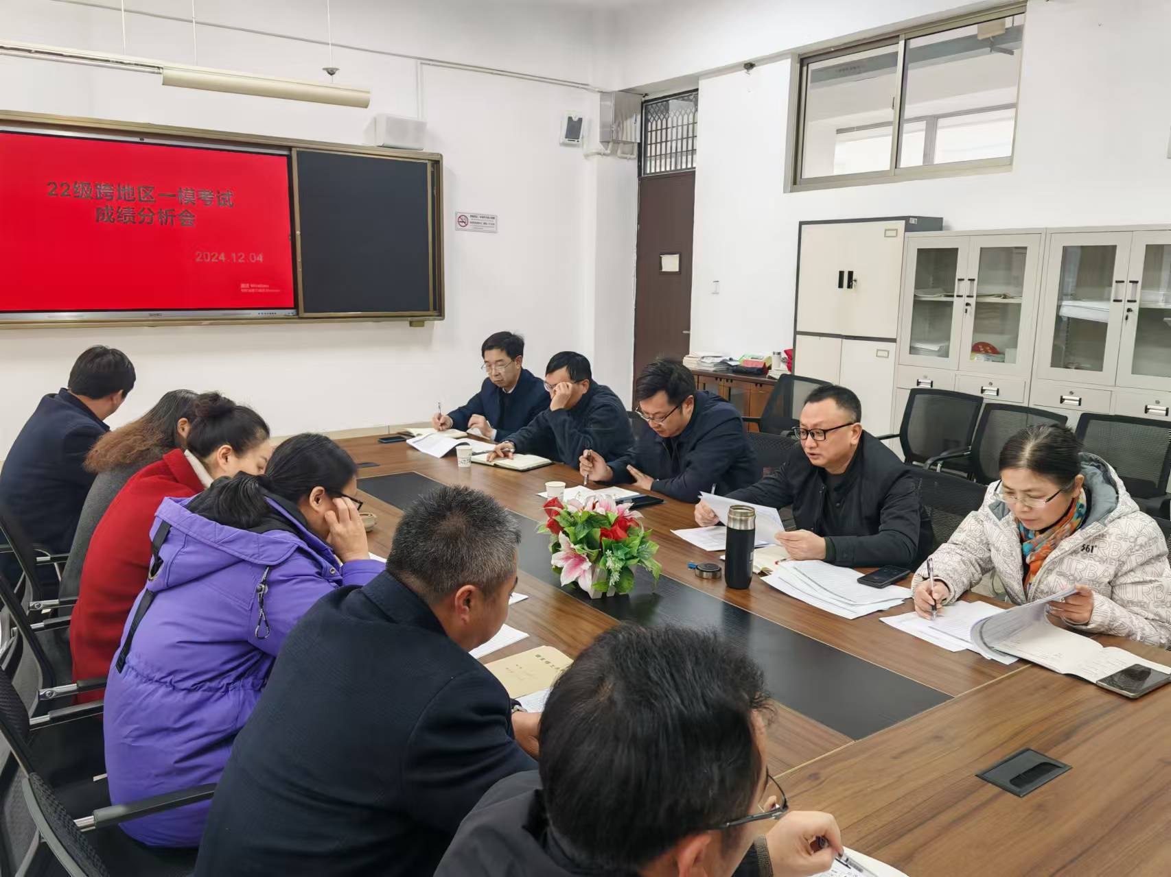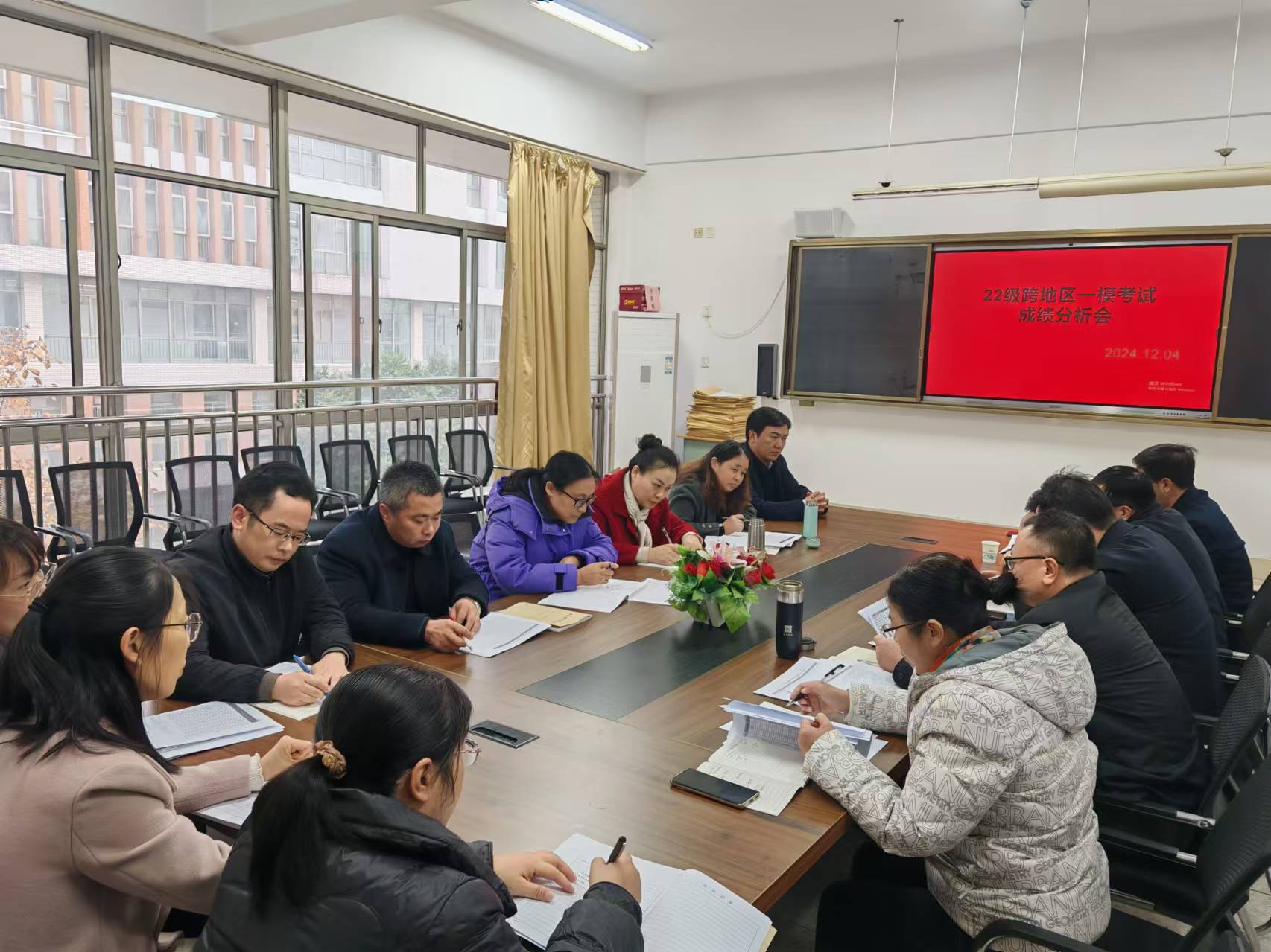 2024年12月4日下午,单招部召开了22级跨地区一模考试成绩分析会。学校领导肖波校长、曹荣军副校长、单招部管理人员和高三年级的所有班主任参加会议,会议由单招部叶开进主任主持,分三项议程。