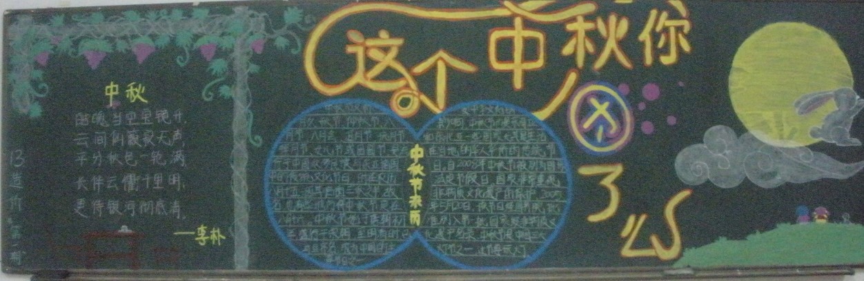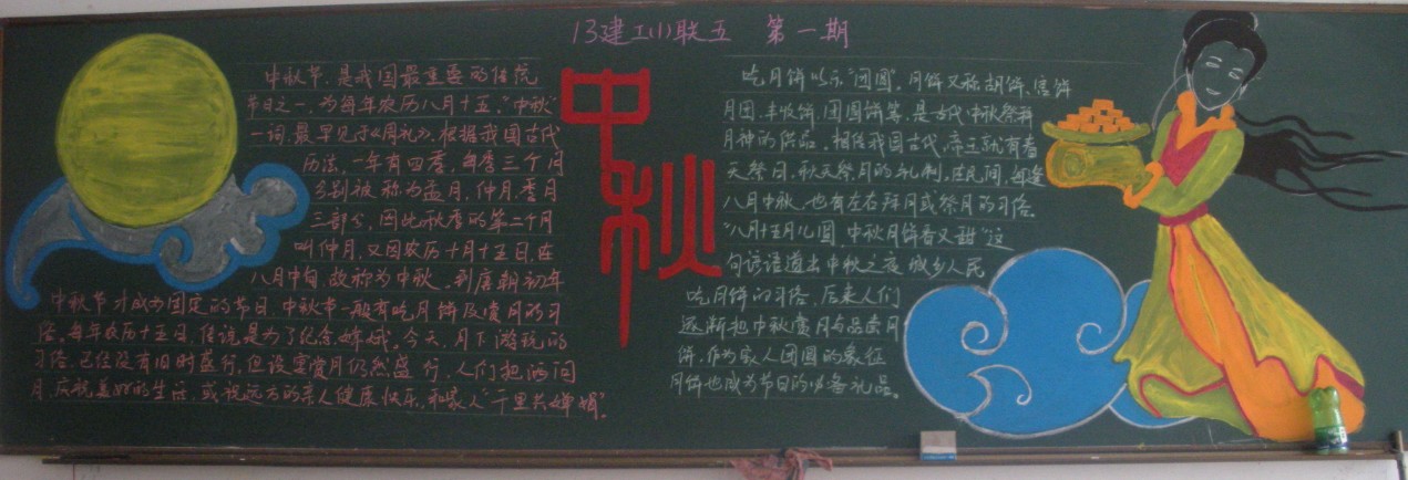 2014年9月11日,我系组织开展了第一期以“欢度中秋”为主题的黑板报评比活动。经过系团总支和学生会认真评比,共评出一等奖1名,二等奖2名,三等奖3名,现将获奖名单公布如下: 一等奖:13造价 二等奖:12建工(2)【联五】 13建工(1)【联五】 三等奖:12施工【成高】 12建工(2)【联五】 13泰州
