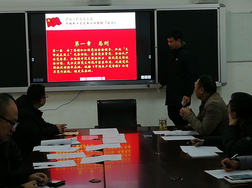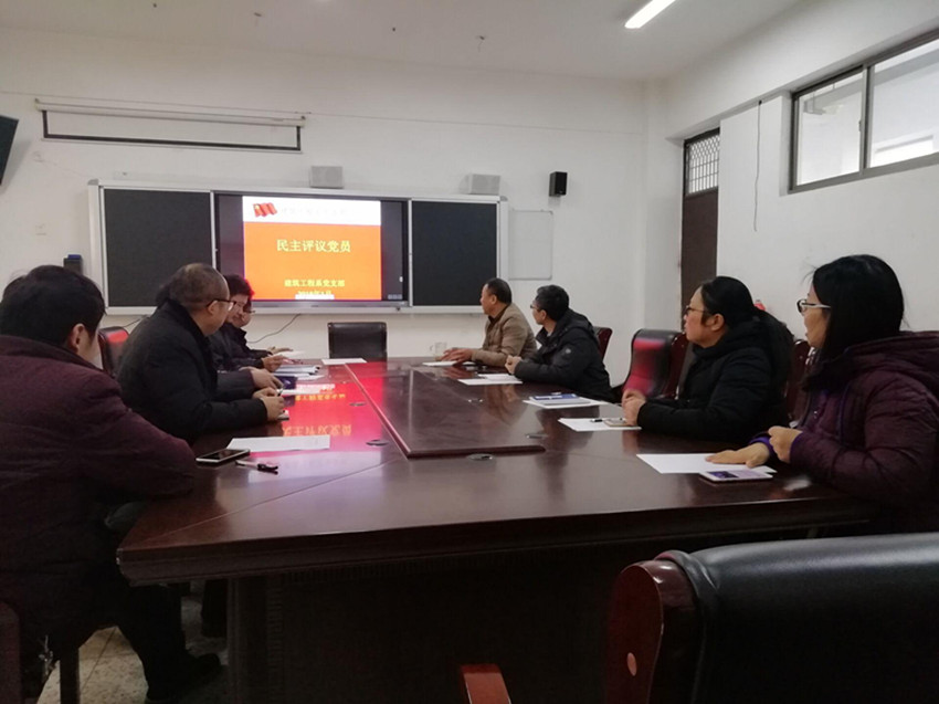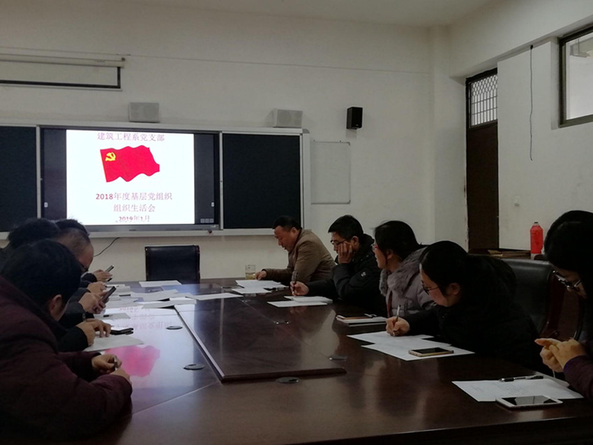 1月18日下午,建筑系党支部在系部会议室召开了组织生活会。会议由支部书记周广东主持。 会议紧紧围绕深入学习贯彻党的十九大精神,牢记党的宗旨,强化“四个意识”,坚定“四个自信”,发挥先锋作用,争做“四个合格”党员来进行。 会上,支部书记周广东汇报了2018年建筑系支部工作情况。随后,各位党员对照习总书记提出的合格党员标准,从政治思想、理论学习、工作作风等方面深刻剖析了问题的根源,明确了今后努力的方向和整改措施,对自我进行了深入批评,并对其他党员开展了严肃直接而又中肯的批评。 然后,支部全体党员同志认真填写了《组织生活会个人问题清单》《党员年度考核评议表》《党支部班子民主评议表》,并进行了民主测评。 最后,支部全体党员一起学习了《中国共产党支部工作条例(试行)》,为本学期的工作画上了一个完美的句号。