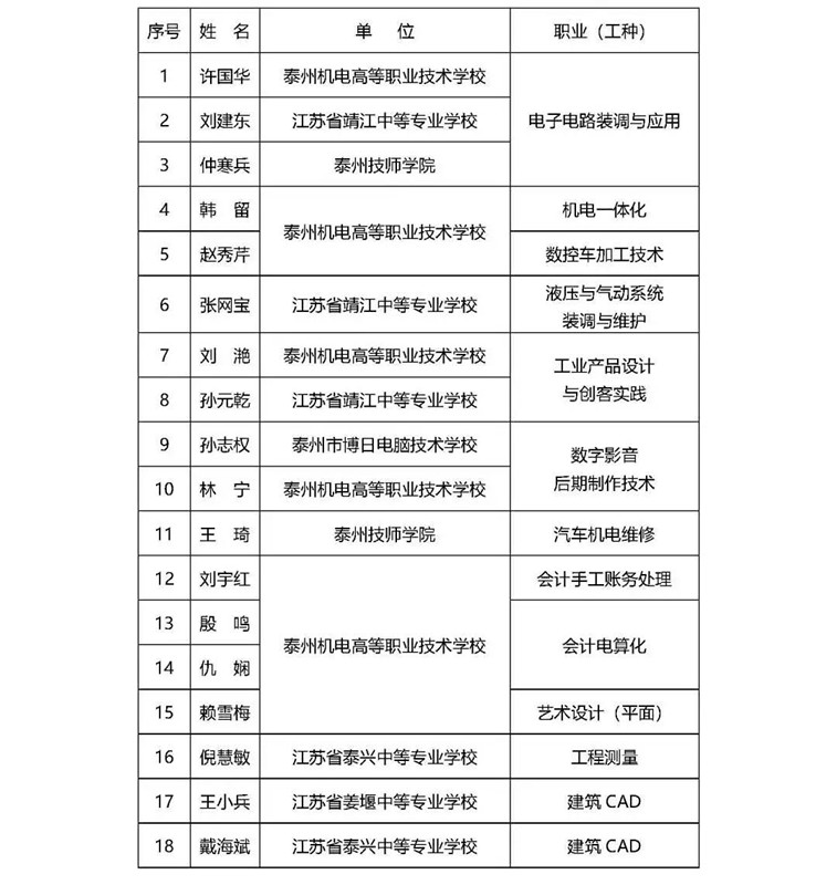 点赞“工匠”!建筑系两名老师荣获“泰州市技术能手”称号
