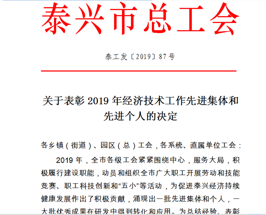 关于表彰2019年经济技术工作先进集体和先进个人的决定