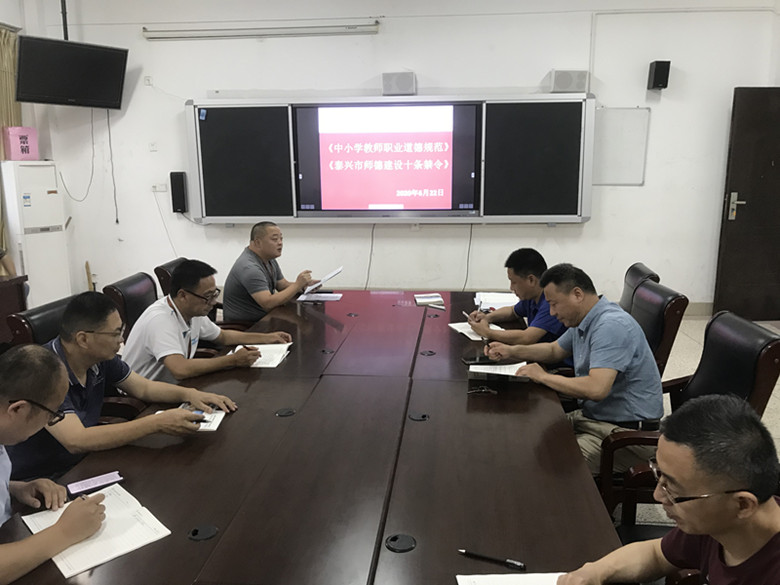 与会人员集体学习了《中小学教师职业道德规范》以及《泰兴市师德建设“十条禁令”》,刘主任详细解读了每一条规范和条令,强调所有教师要充分认识开展专项整治工作的意义,做好学习笔记,坚决杜绝走过场、搞形式,一定要落细落实,深入开展自查自纠活动,逐项逐条对照规范内容,查摆问题,落实整改措施。
