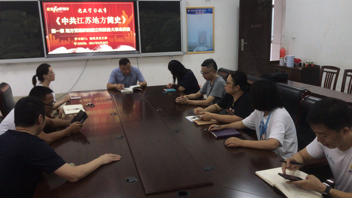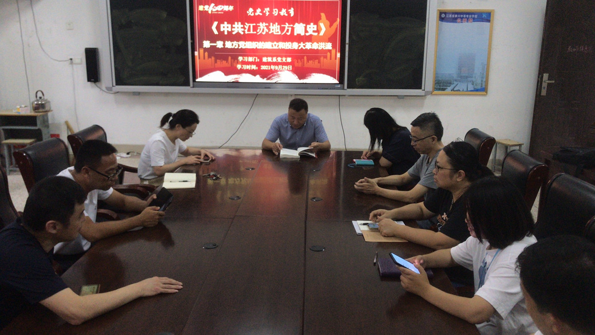 9月29日下午4点,建筑系党支部组织全系党员集中学习《中共江苏地方简史》,支部书记周广东着重领学了第一章《地方党组织的建立和投身大革命洪流》。
