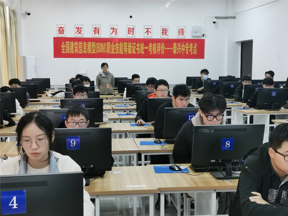 “1+X”建筑信息模型(BIM)职业技能等级证书考试工作,是落实立德树人根本任务、完善职业教育和培训体系、深化产教融合校企合作的一项重要措施,旨在以考促学,让所有建筑专业的学生都能够融入到BIM技能的学习中去,早日成为泰兴建筑业的高素质技术技能人才。