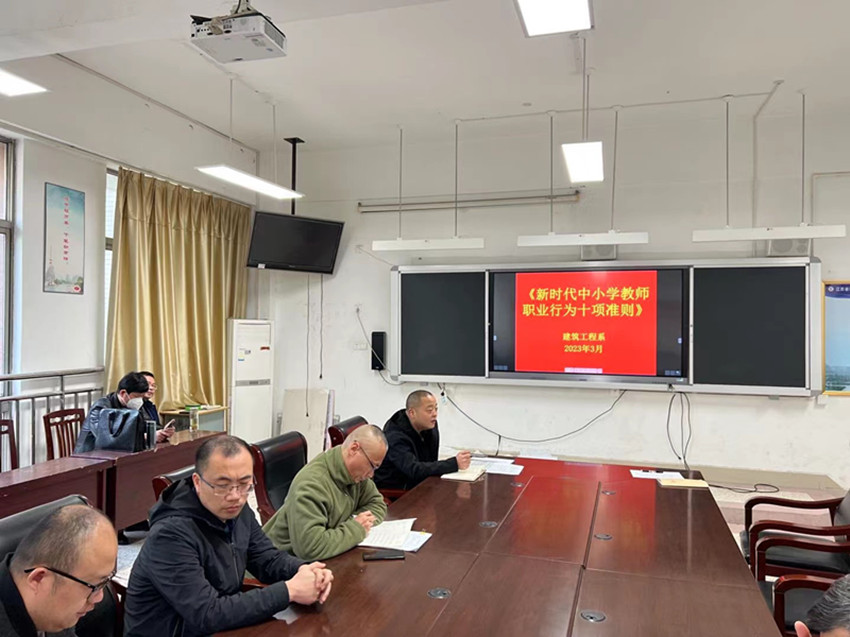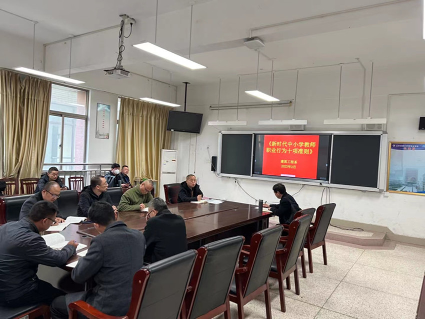 为深入学习贯彻落实上级文件精神,进一步加强师德师风建设,引导广大教师努力成为有理想信念、有道德情操、有扎实学识、有仁爱之心的好老师,3月22日下午,建筑系组织全系教职员工学习了教育部印发《新时代中小学教师职业行为十项准则》。