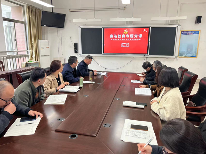 为贯彻落实《中国共产党党员领导干部廉洁从政若干准则》,切实加强对党员干部的反腐倡廉教育,提高新形势下反腐倡廉教育的针对性和实效性,3月31日下午,建筑系党支部开展支部书记讲党课主题党日活动,支部书记周广东以“贯彻落实廉政准则,争当廉洁从教表率”为题,为支部全体党员讲授一堂内容丰富、意义深刻的廉洁教育专题党课。
