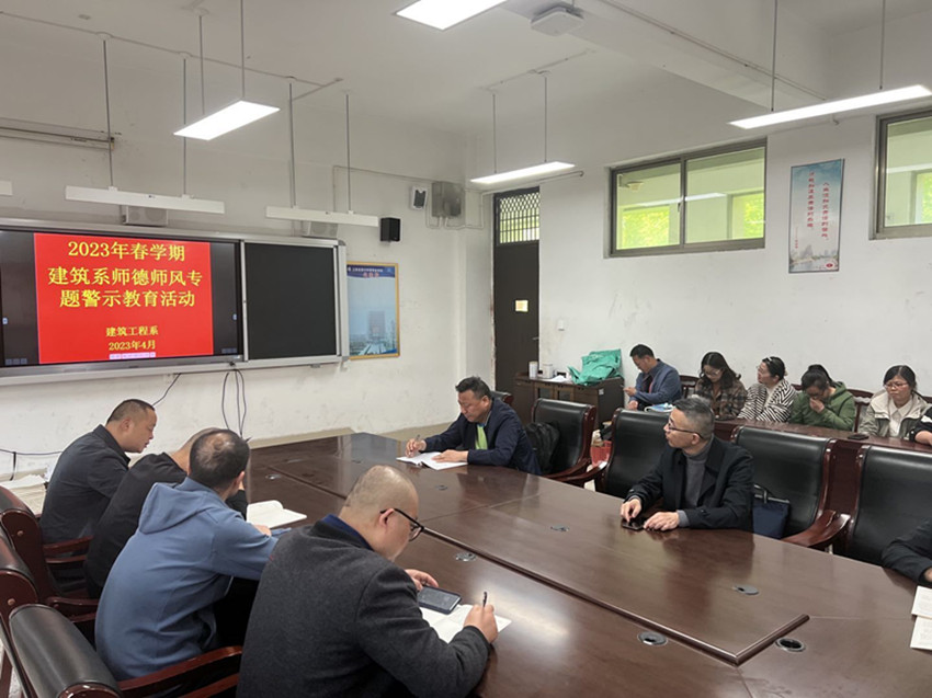 教师不仅是知识的传播者、智慧的启迪者、人格的影响者,也是道德的实践者和示范者。为了进一步推进师德师风建设工作,增强教师的责任感、使命感,4月12日下午,建筑系党支部组织全系教师开展2023年春学期师德师风专题警示教育活动。