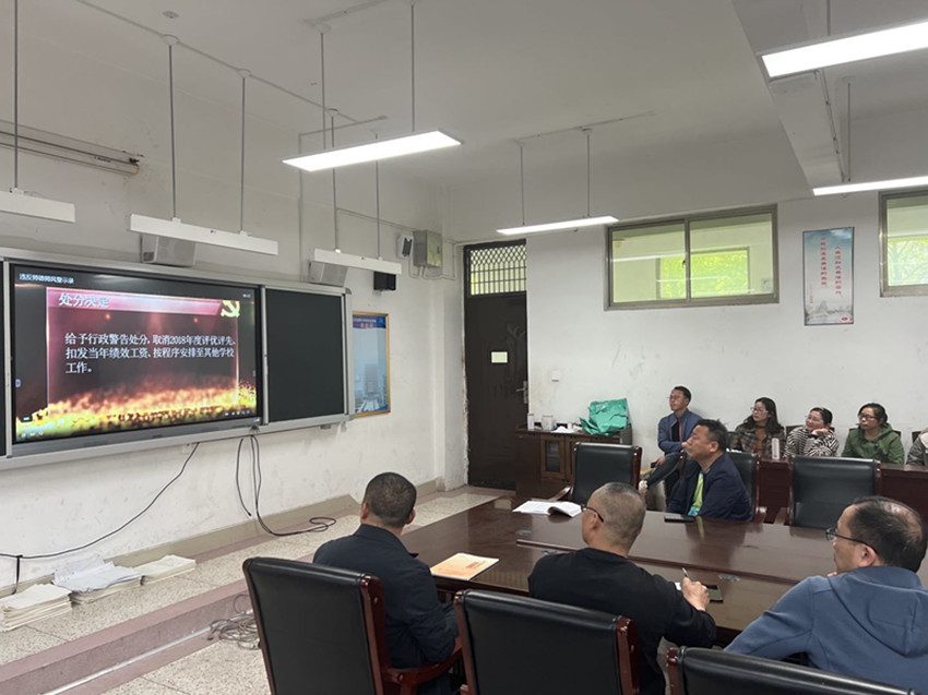 首先,组织学习了违反教师职业行为准则的典型案例,警示教师们一定要在思想上、行为上对纪律和准则心存敬畏,务必要引以为戒,牢固树立底线意识。