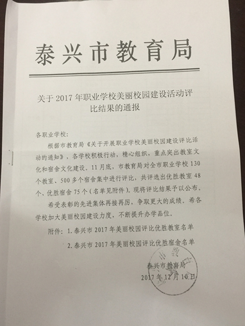 日期:2017-12-11 来源:江苏省泰兴中等专业学校 点击:
