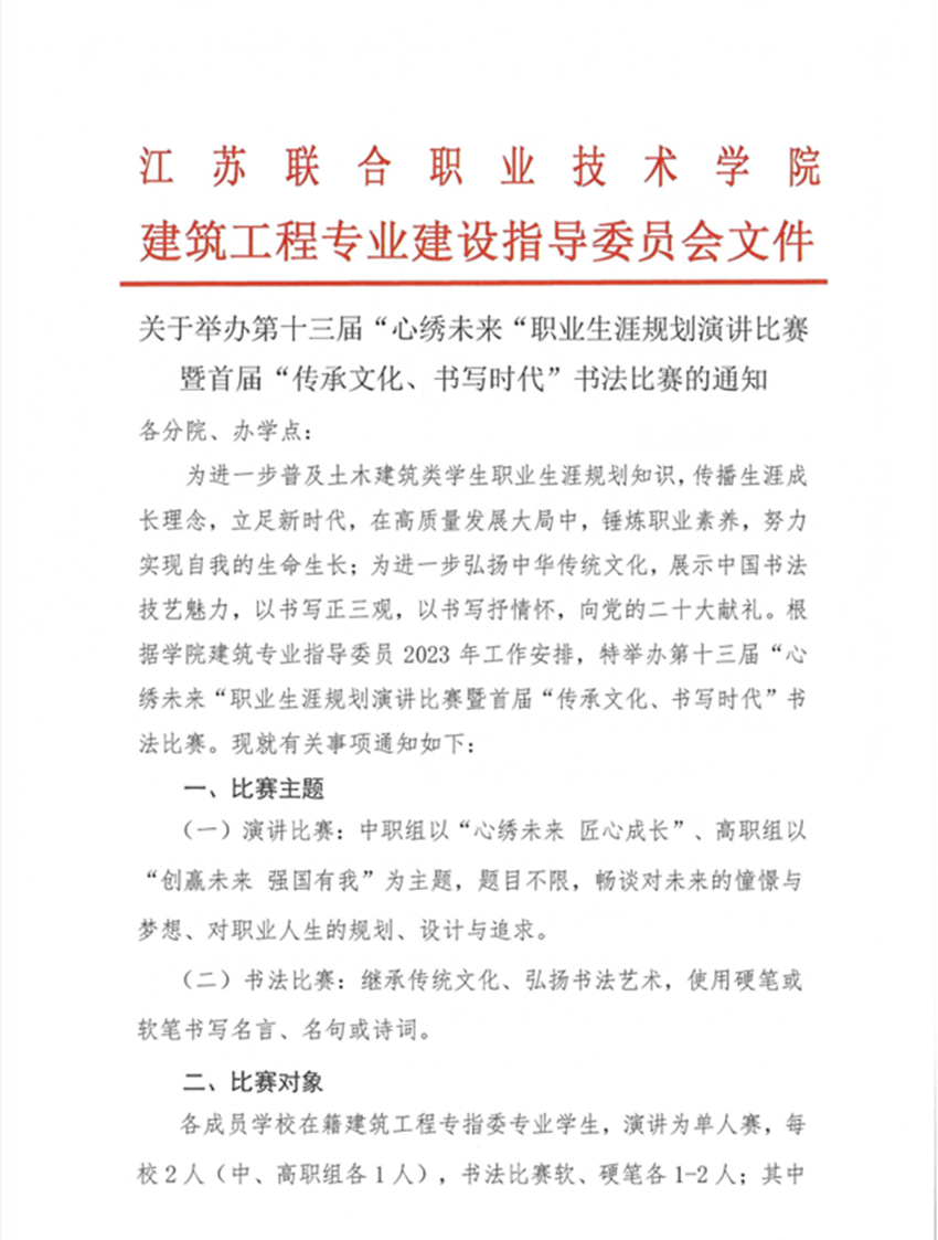 关于举办2023年江苏省泰兴中等专业学校 建筑工程系学生技能运动会的通知