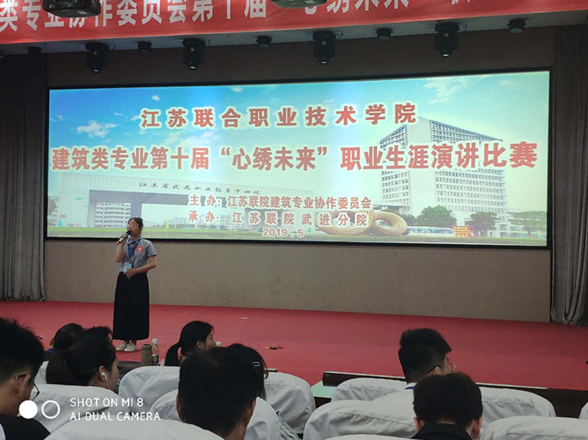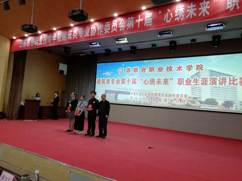 2019年5月22日上午,由江苏联合职业技术学院建筑协作委校企合作与就业组牵头,江苏联院武进分院承办的第十届“心绣未来”演讲比赛如期进行。 来自联院15个成员学校的30名选手同场竞技,建筑系17建工联五班学生戴颢在戴兵全老师指导下,不负众望,脱颖而出,夺得此次演讲比赛的一等奖。