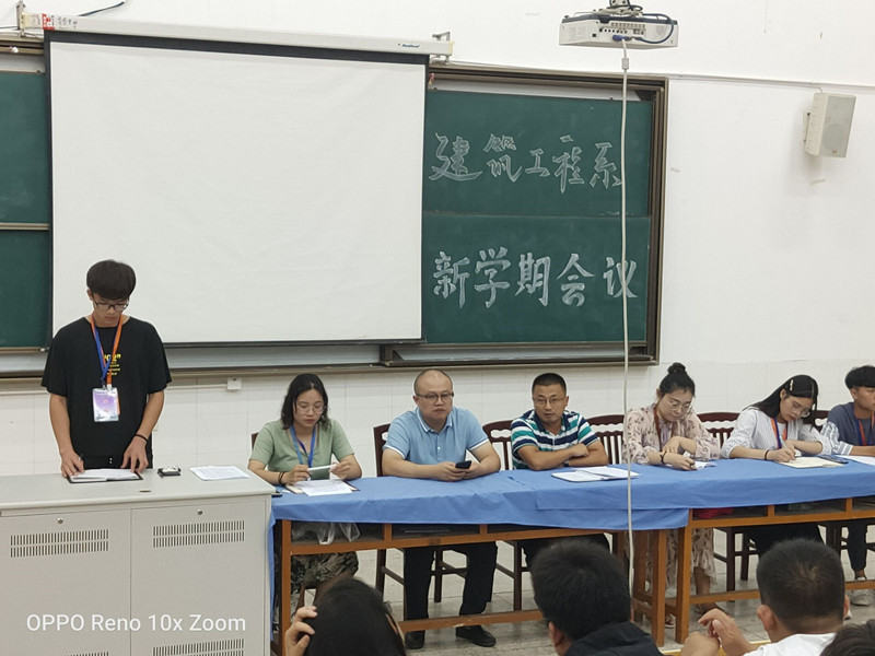 炎炎夏日已经渐渐离去,迎来了凉爽怡人的秋天,假期里校园漫步都是安静与沉寂,而今又充满了朗朗书声和欢声笑语。丰收的九月,于我们却是新学期的开始,带着希望,带着憧憬,怀着激动,怀着兴奋,我们又回到了学校,开始了新学期的学习和生活。在此,建筑工程系学生科向同学们致以新学期的问候和良好的祝愿。 九月九日晚,我们全体学生会成员(包括新生成员)在系部阶梯教室召开新学期学生会第一次例会,学生科顾海洋科长、戴兵全老师,团总支周雨书记受邀参加。本学期,我们学生会工作有了新的变化,成立了学习部,把早读课管理提到一个重要的位置上。我坚信,我们全体学生会成员定会以饱满的热情、昂扬的斗志、踏实的精神、坚定的信心去做好学生会的每一份工作,再创建筑系新的辉煌。 在例会上,顾海洋科长剖析了什么是学生会、为什么加入学生会、学生会干部应具备哪些素质、当好学生会干部应注意哪些方面。要求学生会成员干部要做到“四勤”(腿勤、嘴勤、手勤、脑勤),并在日常工作中注意三大问题:1、注意自身形象2、注意工作方法、工作技巧 3、具有良好的协调组织能力和带头意识。 戴兵全老师将顾海洋科长的带头意识归纳为:别人不干我干、别人怕干我干、别人干不了我干。强调学生会要注意新老传承优良传统,开会一定要做笔记,并把学生会工作流程精细化、精准化作为未来一段时间攻克的难题。学习部、文宣部协同合作,办好系部“迎大庆”合唱预选比赛。 周雨书记在会上指出共青团的宗旨是为学生服务、为青年服务。团总支就必须强化服务意识,在学生中起到先锋模范带头作用。 一份耕耘,一份收获。成绩来源于平时努力的过程。在新的一学期,学生科希望大家做到以下几点: 第一,树立一个信心:我能行。而不是没有尝试就选择放弃。 第二,创立一种学风:认真,勤奋,刻苦,求实。学生会成立学习部就是要把学生的精力回到学习这个本职工作上来。 第三,读好一本新书:“腹有诗书气自华”,走近诗书,走近经典,让我们在经典名著中含英嚼华,熏陶渐染,提高自己的文学素养。 第四,培养一种习惯:自觉。“习惯决定一切”。有一句话说得好:我们不能选择生活,但是可以选择生活的习惯。好的习惯能弥补不足,不良的习惯将使优势变成劣势。 第五,创设一种环境:安全,稳定,文明,有序,让我们的系部更和谐。 亲爱的同学们,请珍惜每一个读书的早晨,用生命中最浓的激情,最美的期待迎接日出,郎朗书声是我们献给太阳的礼赞!灿烂明天要靠我们去奋斗,去描绘,去创造。让我们携起手来,齐心协力,用辛勤的汗水写就建筑工程系明天壮美的诗篇。