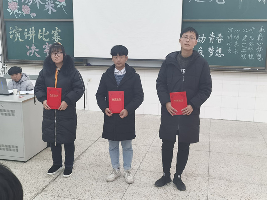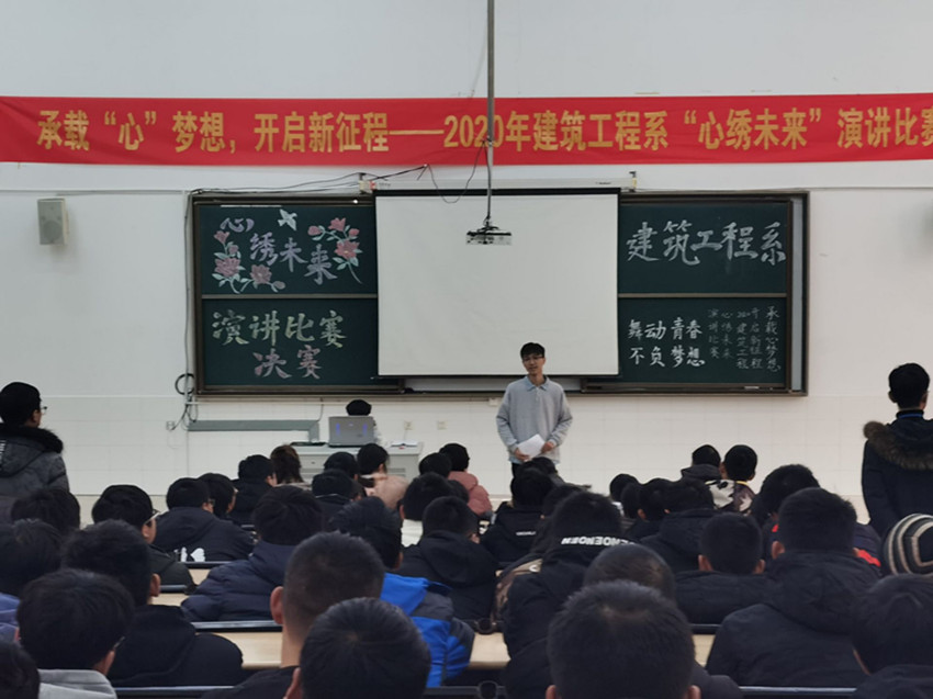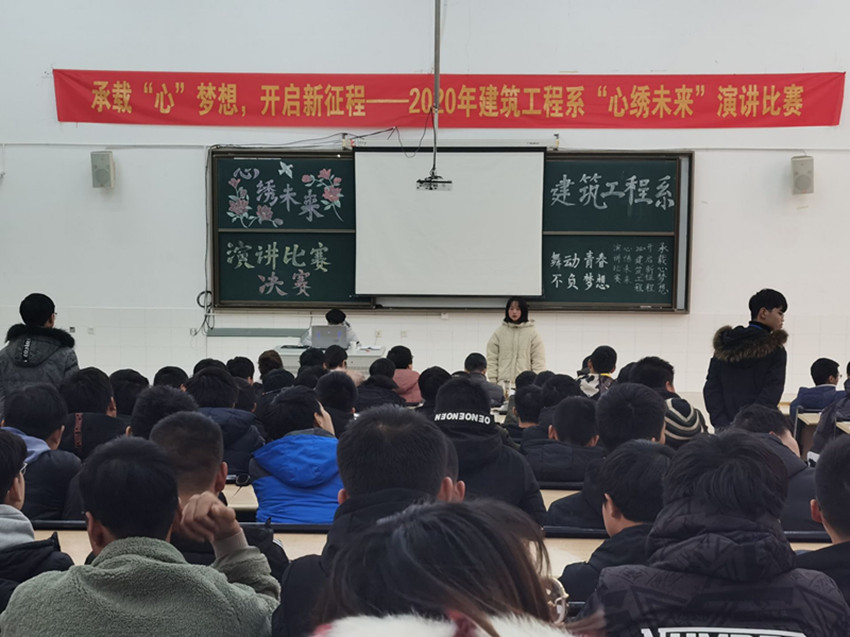12月24日下午,建筑系2020年承载“心”梦想开启新征程心绣未来演讲比赛成功举行。 此次活动,培养了学生的口语表达能力,提高了学生综合素质,促进了学生全面发展。 本次共有15名选手,经过两个多小时的激烈角逐,最终荣获一等奖的是:17施工丁云龙同学;荣获二等奖的是:18建工向佳钰、18造价姚蓉;获得三等奖的是:18建工吕潇、19施工3+3的蔡小龙和周云鹏。