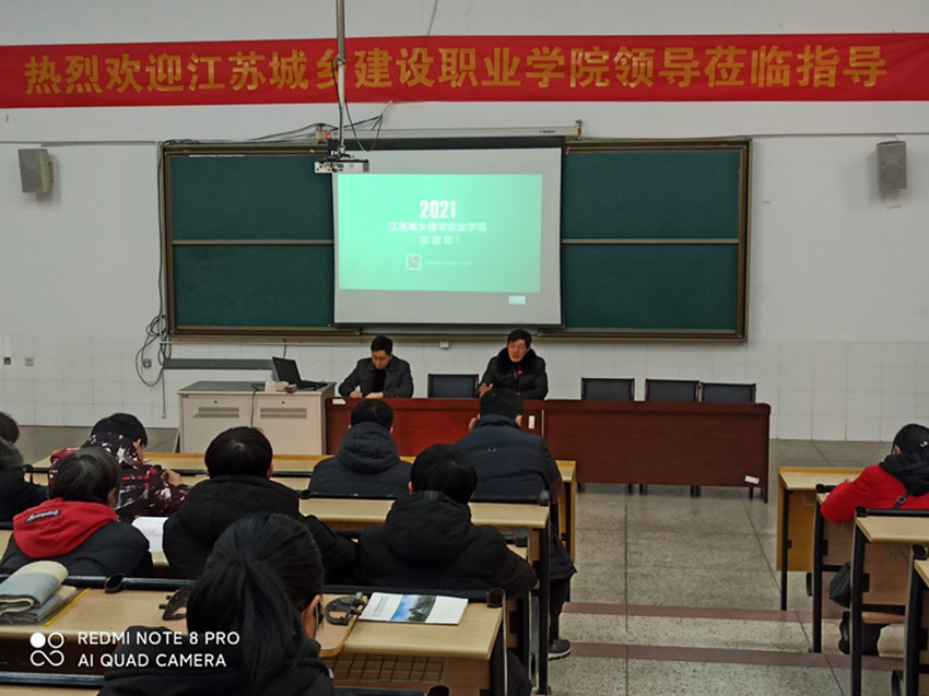 接着,江苏城乡建设职业学院刘波主任也对春季报道工作的注意事项作了详细的说明,尤其是针对报到时间、地点、交通以及缴费等,一一给以解答。