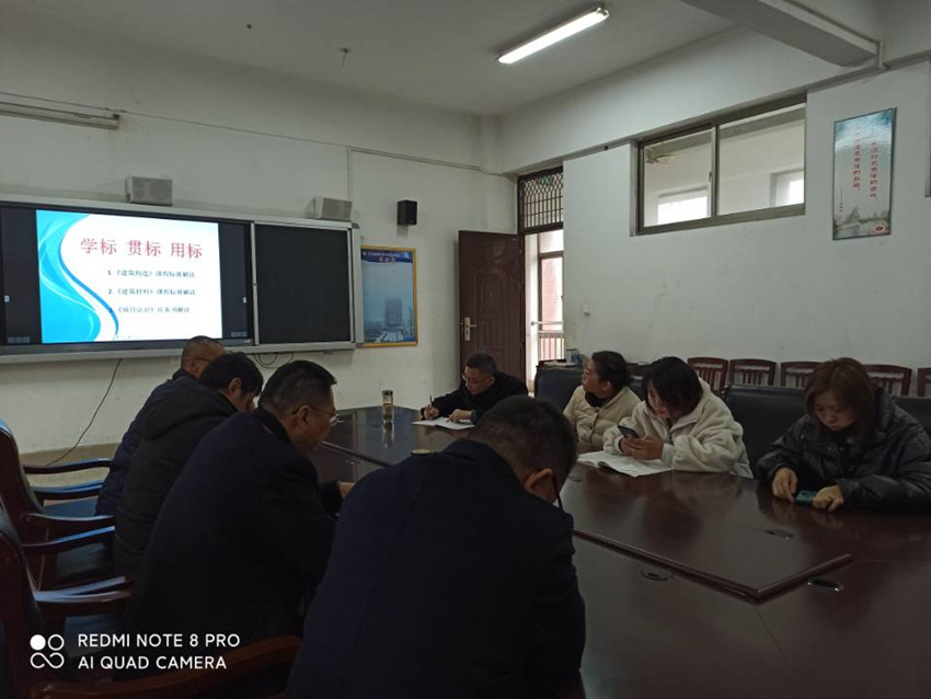 为了深化贯彻落实《国家职业教育改革实施方案》,推进教育部、教育厅相关教学标准落地实施,充分发挥标准在职业教育质量提升中的基础作用,促进教学改革,提升教育教学质量,日前,建筑系教务主任生金根主持召开了建筑专业教研组的 “学标、贯标、用标”教研活动。建筑系所有专业课教师参加了本次教研活动。