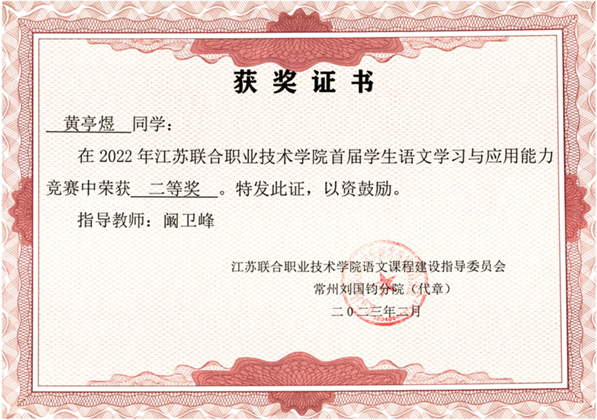 为进一步激发五年制高职学生语文学习兴趣,提升语文学习和应用能力,培养语文核心素养,江苏联合职业技术学院语文课程建设指导委员会举办了学院首届学生语文学习与应用能力比赛。