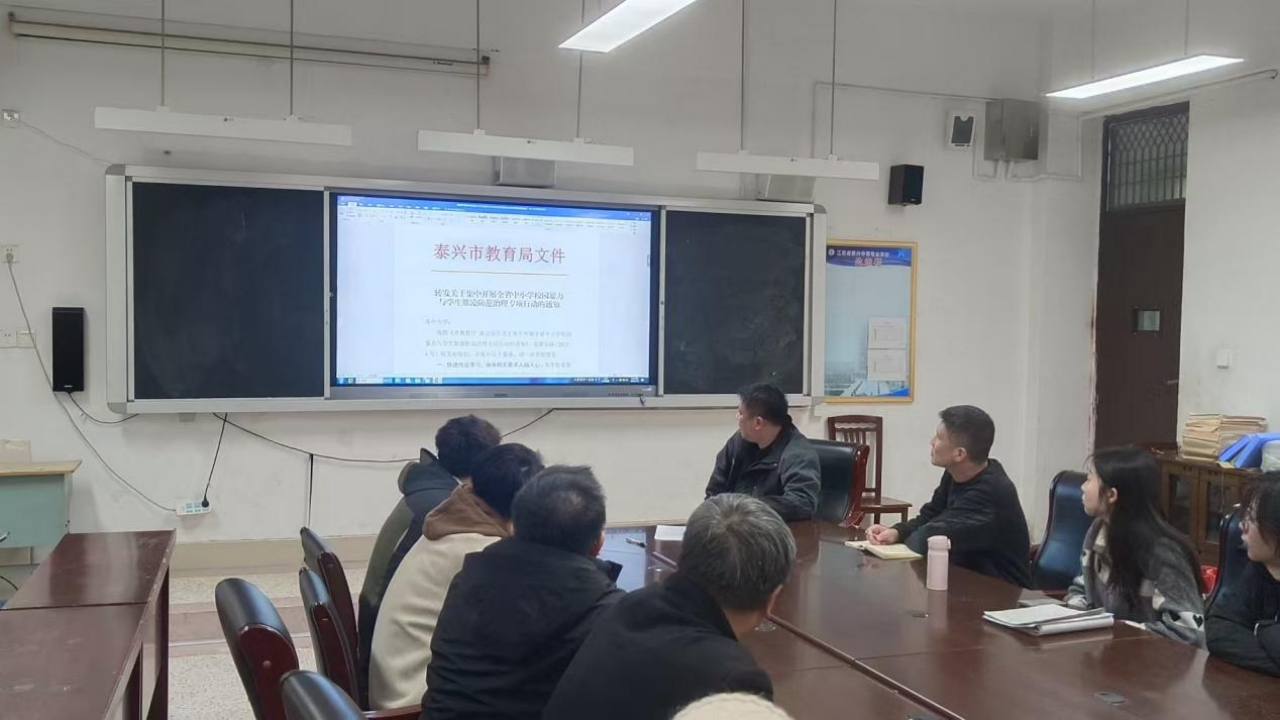 会上,朱岳主任组织全系教职工学习了泰兴市教育局《转发关于集中开展全省中小学校园暴力与学生欺凌防范治理专项行动的通知》。通知要求从学习传达、行动落实和机制建设三个层面推进专项行动,细化落实工作清单,确保实现“目标清、底数清、责任清、措施清”的工作目标。
