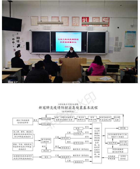 会上,马太平主任针对《江苏省中小学2020年春季学期开学工作指引》做了全面解读,他要求系部全体教职工要全力做好返校开学期间的系部的疫情防控和开学工作,切实保障系部师生身体健康和生命安全。他指出,高度重视疫情防控,精准掌握师生健康状况,全面进行防疫培训,做好延期返校开学期间线上教学与原定春季学期教学计划的衔接等,是开学前工作的重中之重。开学后疫情防控措施要抓实抓细,要严格晨午检制度,确保做到发现有疑似新冠肺炎早期症状(如发热、乏力、干咳、腹泻等)和异常情况,第一时间送医、第一时间报告、第一时间隔离;要严格落实因病缺课登记和追踪制度,及时将相关信息上报;要对教室、办公室、宿舍、桌椅、地面等实施定期消毒,教室、办公室等人员密集区域要加强通风清洁,每日早、中、晚非上课时间打开门窗通风3次,每次至少30分钟;要加强就餐管理,尽量避免集中就餐,督促学生餐前餐后洗手,提倡自带餐具;要加强住宿管理,确保系部男、女生宿舍楼每天均有一位男、女教师值班。