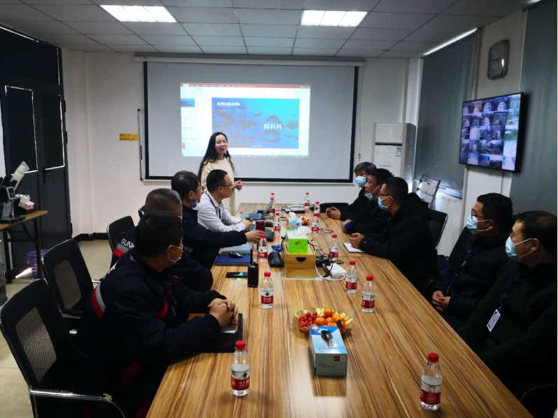 在入厂安全培训与考试之后,化工系的文化课老师与泰兴市昇科化工有限公司的相关负责进行了深入交流。泰兴市昇科化工有限公司负责人向到访老师介绍了公司的企业文化和发展现状:公司以“追求卓越、同心协力、尽职尽责、多元包容”为企业文化的核心,以促进企业的可持续发展;公司目前占地247亩,建有3条丙烯酸生产线,年产丙烯酸48万吨,占全球市场的5%。调研会上,双方还就如何进一步密切学校和企业的联系,深化校企合作;如何培育、培训我校的进厂学生;如何将学校课程与企业实践相结合等进行了深入的交流,并达成了一致的意见。到访老师还在企业工作人员引领之下,参观厂区和实验室。