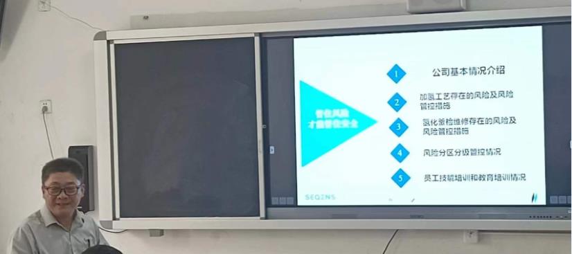 讲座中,季雪峰首先介绍了泰兴市扬子医药化工有限公司的基本情况,然后从工艺生产存在的风险及管控措施、设备维修存在的风险及管控措施、风险分区分级管控情况、员工技能培训和教育培训情况等四个方面详细讲解了在化工生产中存在的风险情况以及必须采取的管控措施。他强调,化工生产安全永远是处于第一位的,一定要严守操作规程、严格工作纪律,确保化工生产的全过程安全。