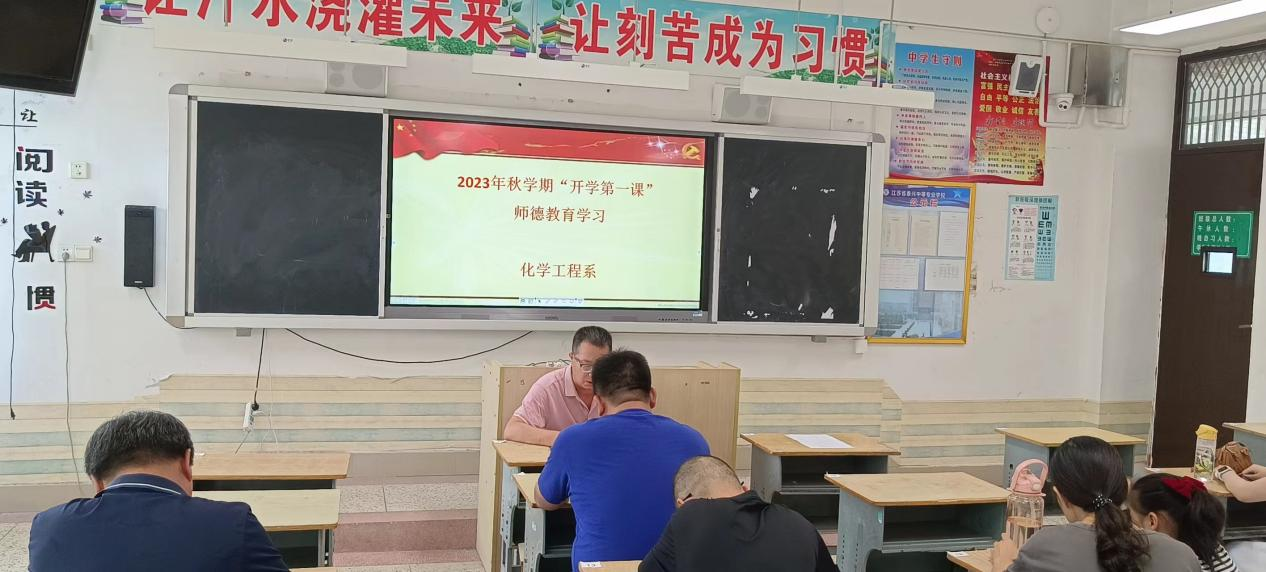 8月26日上午,化工系全体教师在2号楼304室集中学习了《江苏联合职业技术学院重点工作绩效评价实施细则(试行)》和教育局王新军局长“做一个让学生尊敬、家长认同的四有好教师”讲话精神。王新军局长在讲话中指出,一个让学生尊敬、家长认同的好教师一定要有理想信念、有扎实学识、有道德情操、有仁爱之心,做到爱生如子、身正为范、甘为人师,要教书育人、立德树人。