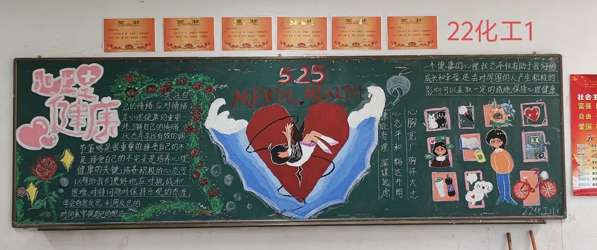 “5·25”即“我爱我”。从关爱自己开始,理性、平和地看待过往的磨难,每一次挫折都是成长,每一次放下都是梦想再起航。在这个微风不燥,阳光正好的五月里,我系特举行以“给心灵一片晴空,让生命蓬勃绽放”为主题的黑板报评选活动。经系部认真评比,共评出一等奖1名,二等奖2名,三等奖3名,现将获奖名单公布如下: