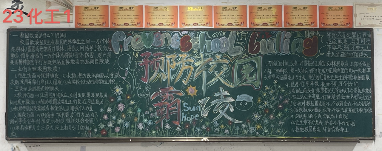 校园是我们学习、成长的地方,应该是充满温暖与关爱的家园。为了杜绝校园欺凌,营造和谐的氛围,我系特举行“杜绝校园欺凌,共建文明校园”主题黑板报评选活动。经系部认真评比,共评出一等奖1名,二等奖2名,三等奖3名,现将获奖名单公布如下: