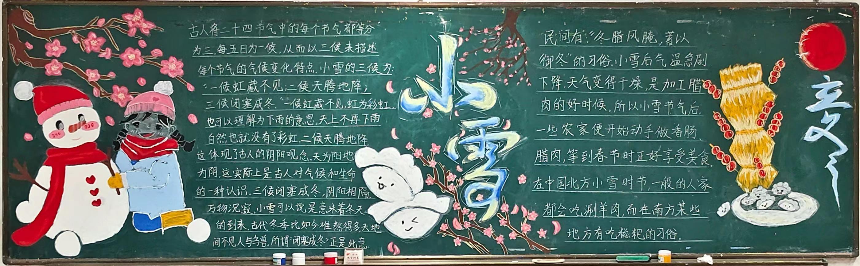 为加深学生对二十四节气的了解,弘扬中华优秀传统文化,我系特举行“二十四节气之‘小雪’”主题黑板报评比活动。经系部认真评比,共评出一等奖2名,二等奖3名,三等奖5名,现将获奖名单公布如下: