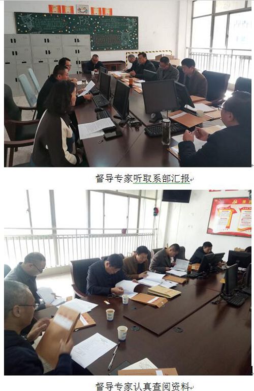 2019年11月21日上午,在孙永鸿主任的带领下,督导室7名成员对我系教学常规管理情况进行了督导检查。督导过程中,先由马太平、殷伟、黄兰三位主任分别介绍了系部教学常规管理情况,然后7位专家成员认真查阅了系部常规管理资料,最后专家成员对督查情况进行了意见反馈。