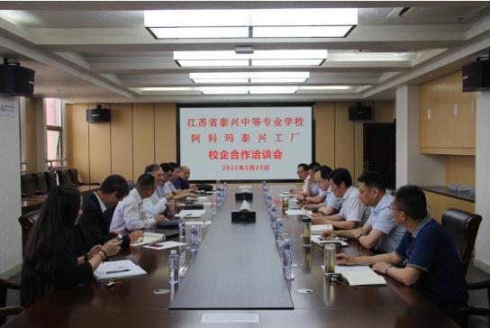 在何校长的带领下,阿科玛集团戴仁威一行人参观我校实训楼等地。洽谈会上,吕主任代表学校对泰兴经济开发区代表与阿科玛集团一行的到来表示热烈的欢迎,通过宣传视频介绍我校,并表示希望阿科玛集团深度参与课程建设与人才培训,提供学生实习实训条件和就业岗位,构建双方共赢的校企合作共同体。