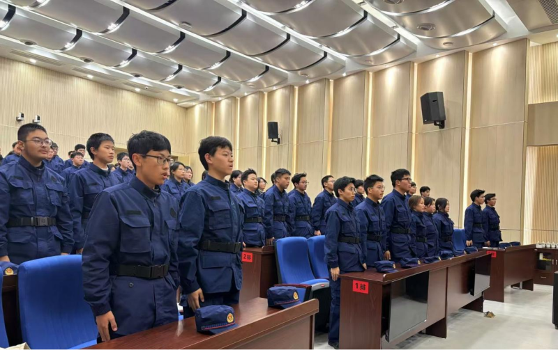 为进一步推进我校应急救援专业学生作风建设,营造积极向上的学习氛围,增强应急救援专业新生的荣誉感、责任感和使命感,11月27日,管理工程系在知行厅隆重举办了应急救援技术专业暨24级新生授衔仪式。参加此次仪式的有系部主任周大锋、学工主任卞红霞、教务主任王东美、实训主任仇亚琴、团总支书记樊琦、应急救援专业负责人冷亮、24级教官王绍裘、林亮及24级应急救援专业全体新生。